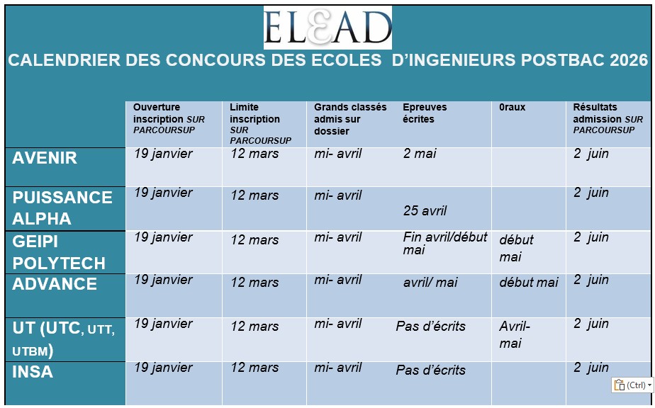 ADMISSION DANS LES ECOLES D’INGENIEURS POSTBAC 2026